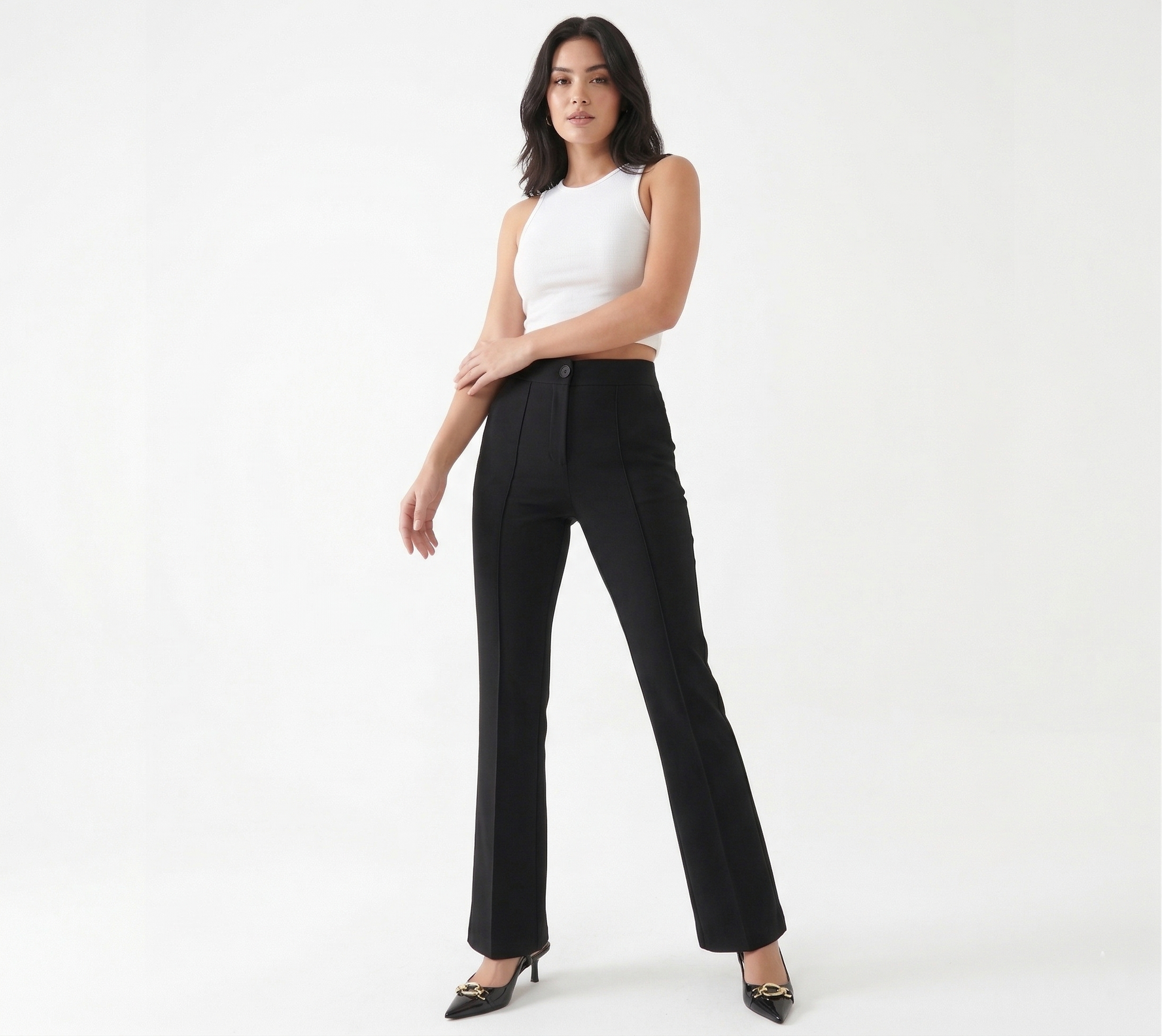 Kadın Krep Kumaş Palazzo Pantolon, modern palazzo kesimi ve yüksek bel tasarımıyla şık bir siluet oluşturur. Orta kalınlıkta polyester krep kumaşı yumuşak dokunuş ve dayanıklılık sağlar. Geniş paça ve beli lastikli yapısı gün boyu konfor garantiler. Düğmeli detayıyla kolay giyilir. Ofis ve günlük kullanıma uygun, tüm sezonlarda tercih edilebilen çok yönlü bir parça. Türkiye'de üretilmiştir.
